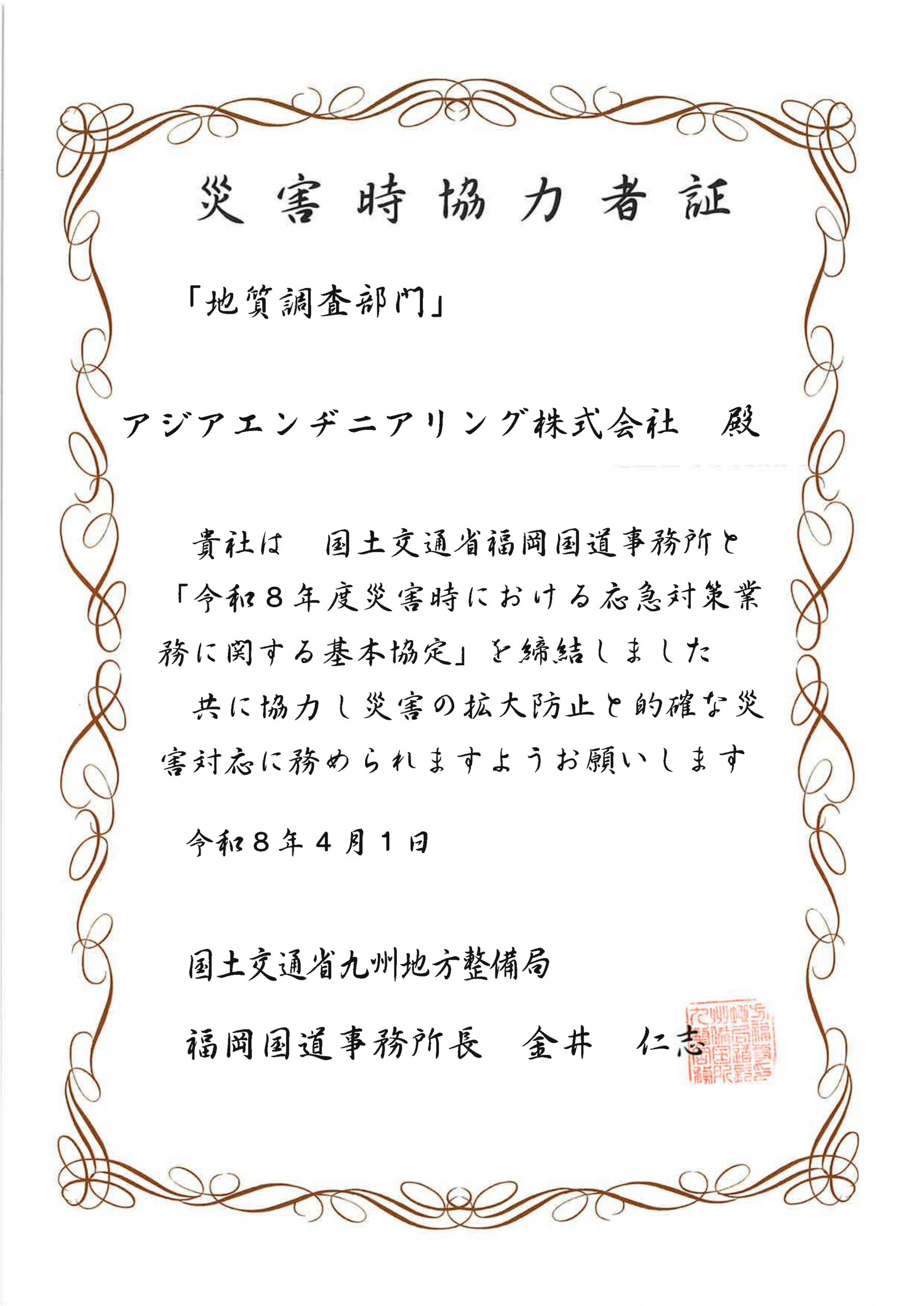 ★災害時協力者証(地質調査部門)